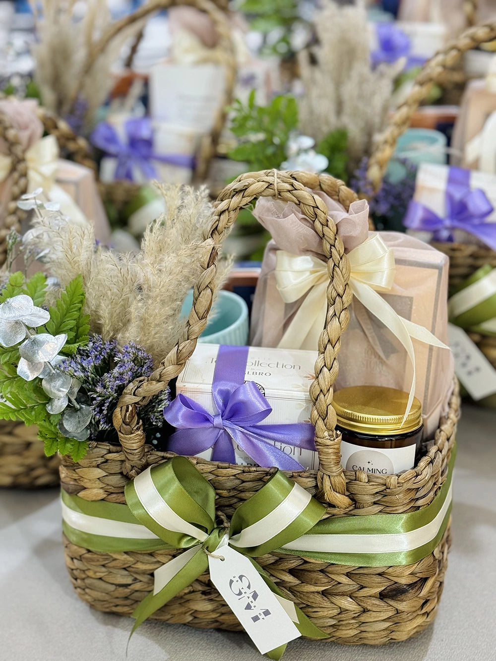 Make your invitation even more memorable with thoughtfully designed hampers that set the tone for your celebration.